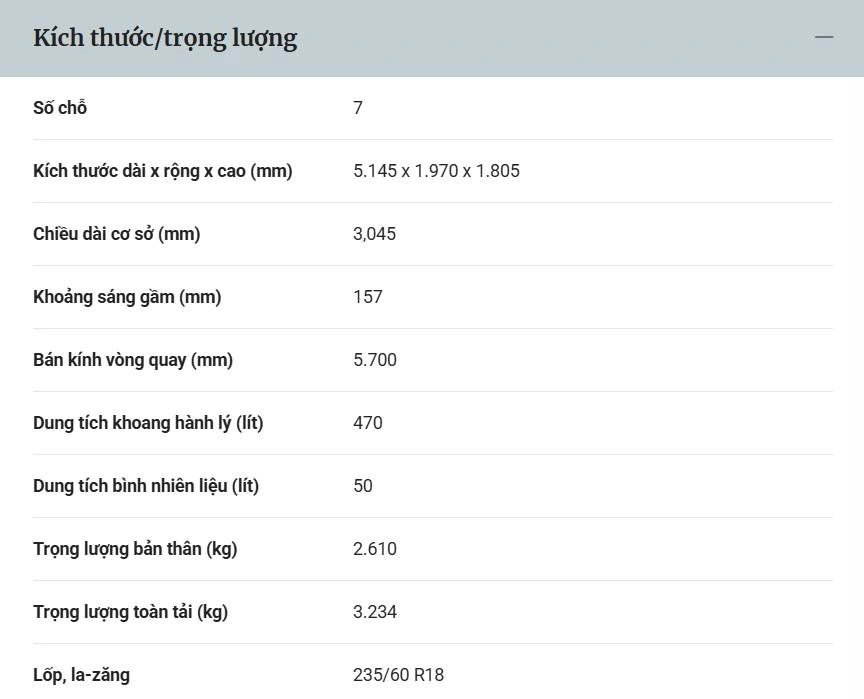 - Mức tiêu thụ năng lượng hỗn hợp: 17.0 kWh/ 100Km (NEDC)