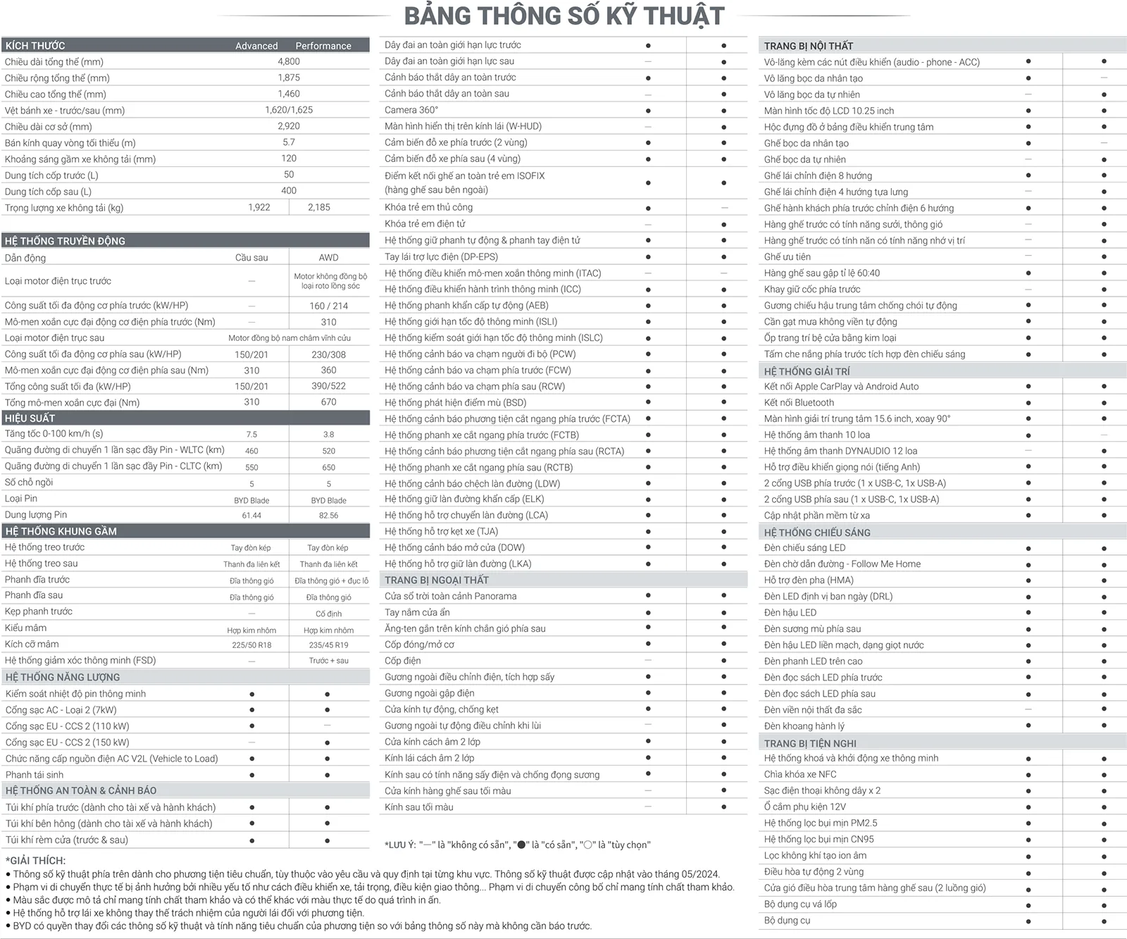 Thông số của BYD SEAL - Sedan EV