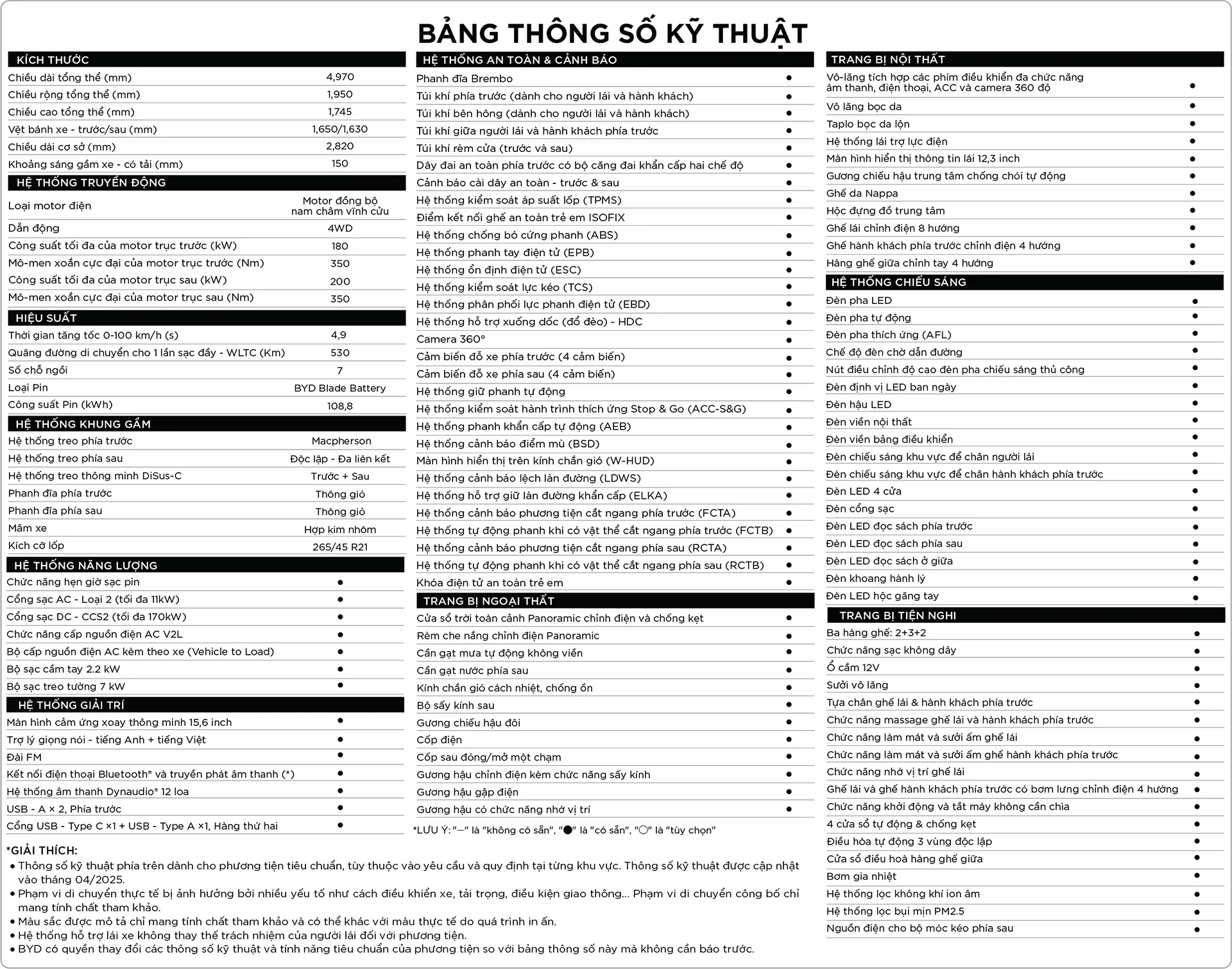 Thông số của BYD SEALION 8 - SUV EV